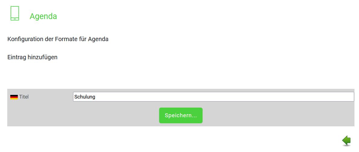 Vergib anschließend den Namen des Formates. Wenn du das System zweisprachig nutzt, kannst du hier auch die englische Variante hinterlegen. Bitte verzichte hier auf HTML-Codes oder Sonderzeichen, da diese die Darstellung innerhalb des Frontends beeinträchtigen könnten. Klicke anschließend auf "Speichern" und wiederhole diesen Vorgang entsprechend oft deiner vorhandenen Formate.
