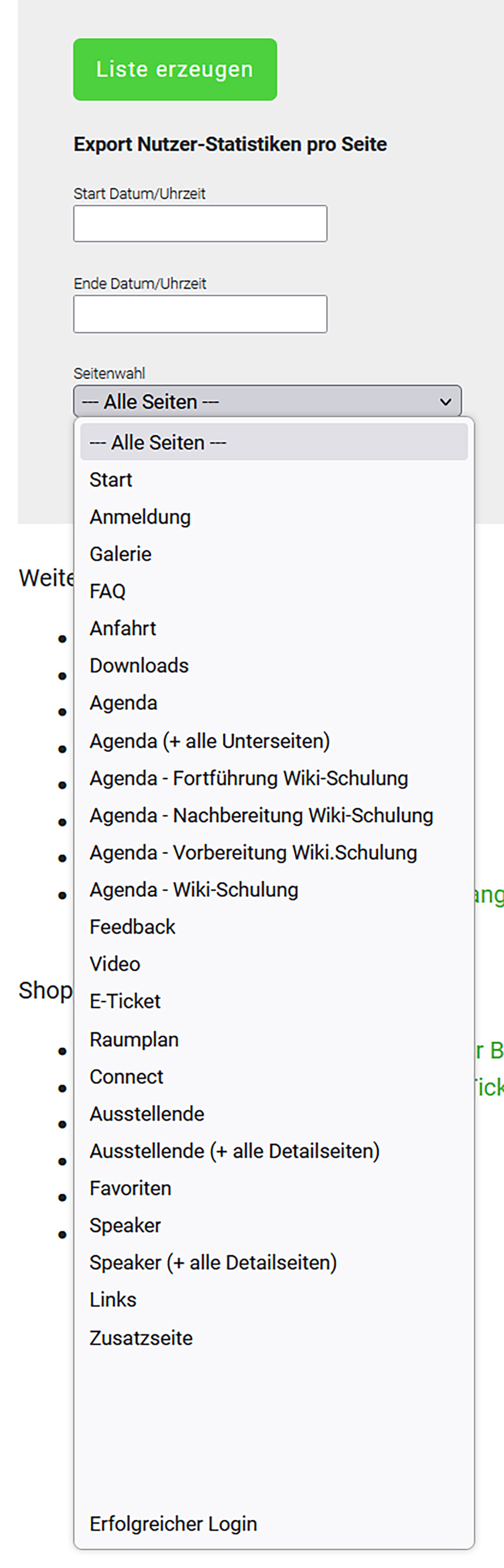Export Nutzer-Statistiken pro Seite