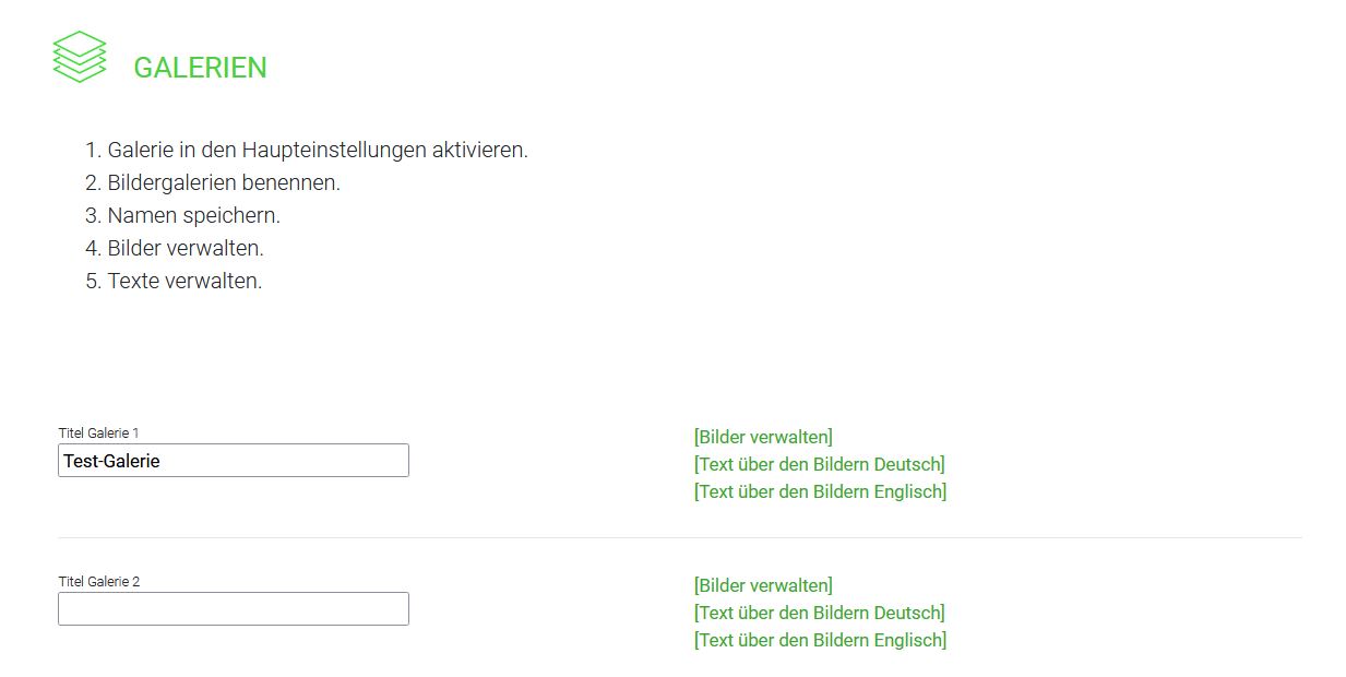 Wir empfehlen, dass hier keine Sonderzeichen im Namen der Galerie verwendet werden, da diese möglicherweise zu Anzeige-Fehlern im Browser führen könnten.