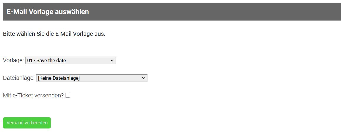 Wenn du diese Checkbox aktivierst, wird innerhalb des Versandprozesses automatisch für jeden ausgewählten Datensatz ein individuelles eTicket generiert und im pdf-Format an die E-Mail angehangen. Zur Info: Wenn du eine Dateianlage und das eTicket an eine E-Mail anhängen möchtest, erhöht sich die Dateigröße und somit auch die Spam-Wahrscheinlichkeit, was zu einer schlechterne Zustell-Rate führen kann.